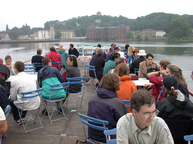 Discussion groups aboard the Cicilienhof on the congress tour.